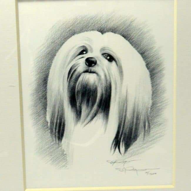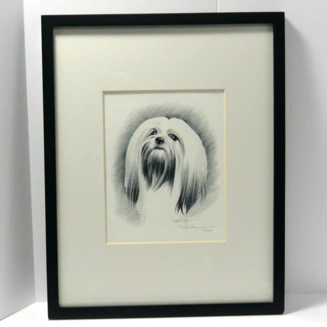 This modern, and exquisitely -drawn portrait of a Lhasa Apso dog would look fabulous in the home or office of any Lhasa enthusiast.