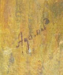 It is a large painting, measuring 28″ tall x 22 3/4″ wide. It is signed in the bottom right corner by the artist. It is in excellent condition.