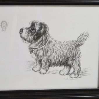 This wonderful, original sketch of a Terrier dog captures all the wonder and whimsy of this puppy’s discovery of a butterfly.