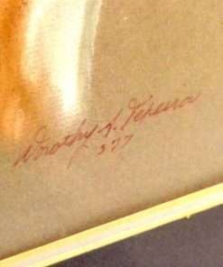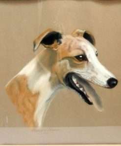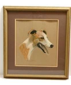 This magnificent study of a greyhound was done in pastel on paper. The detailing is extraordinary down to the brilliant gleam in this gorgeous dog’s eye. Measuring 18″ tall x 16″ wide, it is signed by the artist, and it is in excellent condition.
