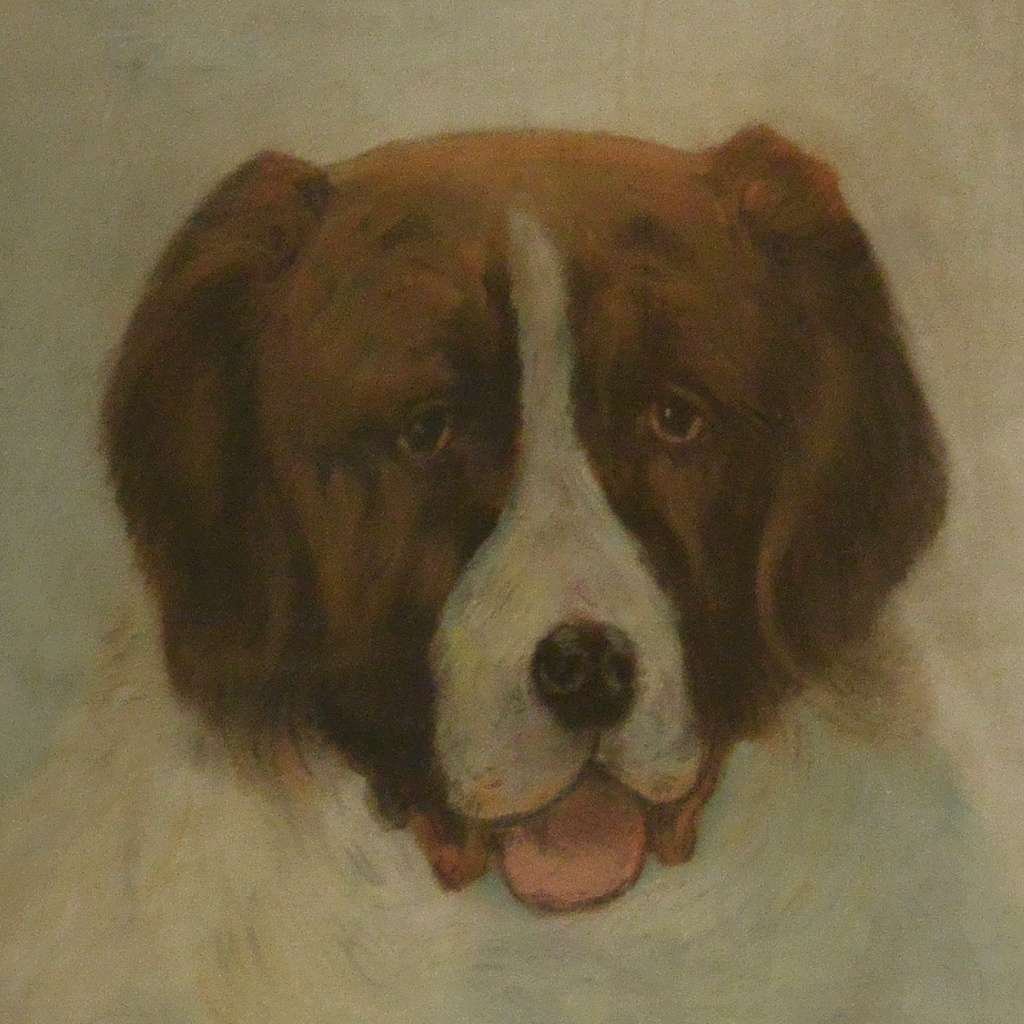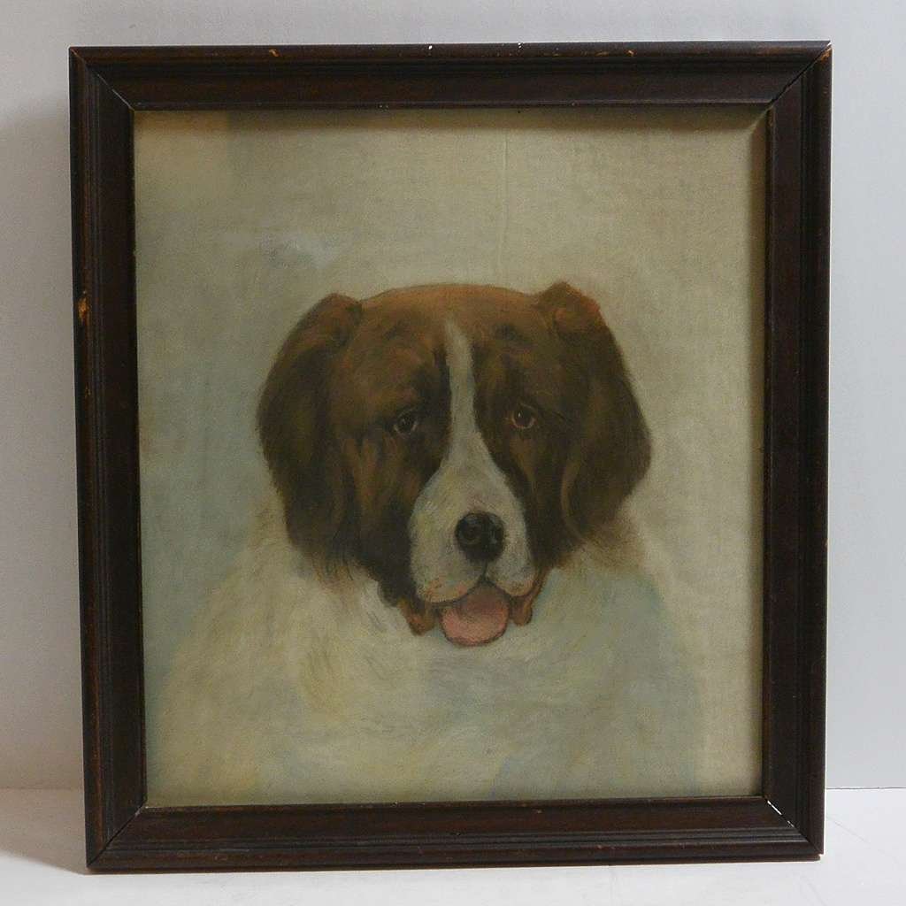 The portrait is in excellent condition, and it has a simple, tender appeal. Those who have had the honor of having a Saint Bernard as a friend, knows all about their simple, but enormously engaging personalities.