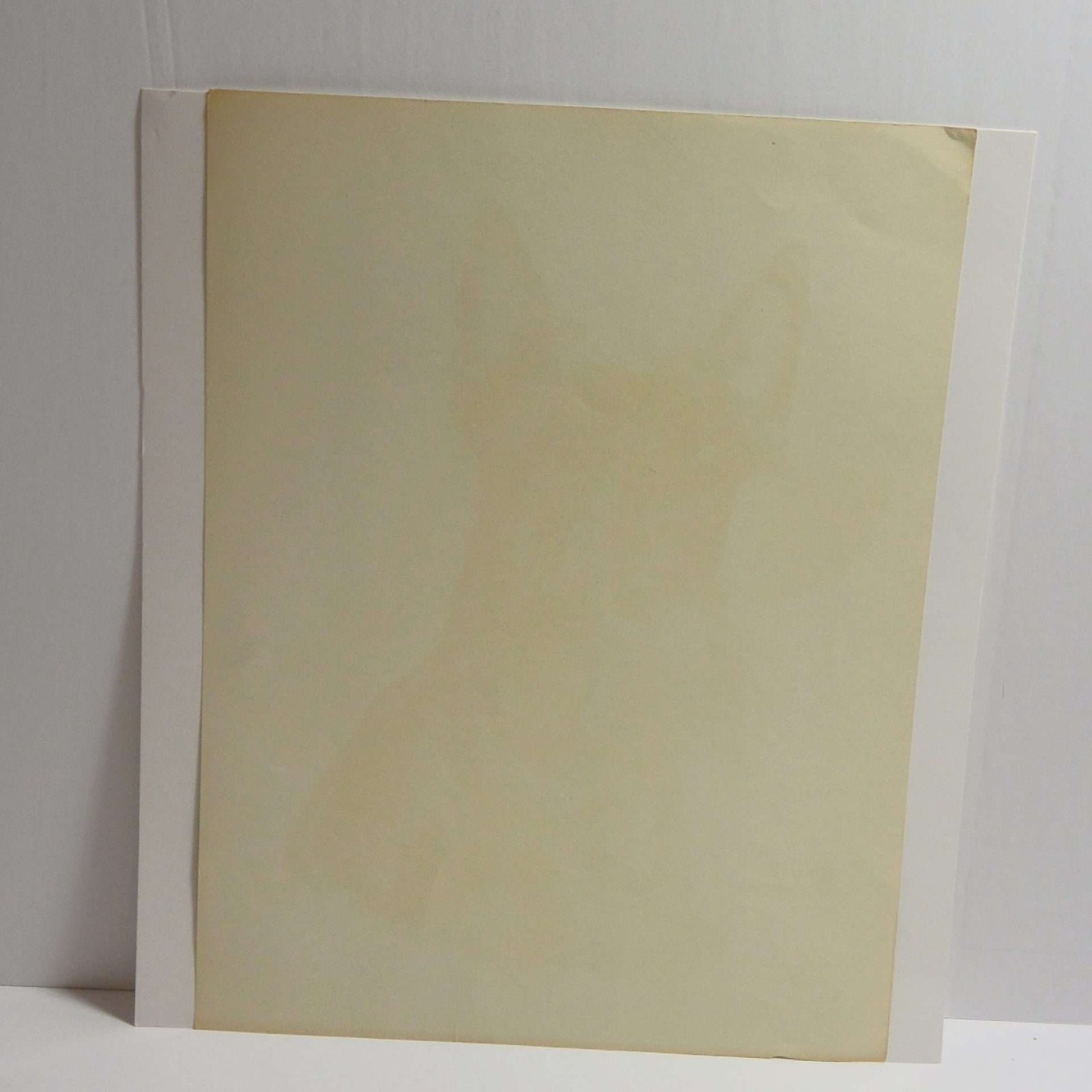 This artist-signed, vintage, lithograph print, has the look of pastels and charcoal on paper, done in soft black, and deep gray , with touches of white inside of his ears and copper in his eyes.