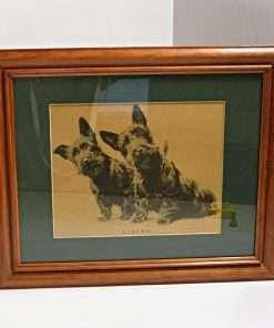 This print of two Scottish Terriers was originally produced by Morgan Dennis of Boston, MA (1896-1960) and then used in 1935 as an advertisement for The Black and White Scotch Whiskey Company.