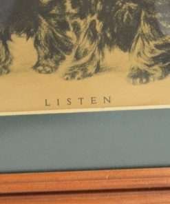 It was then used by the Texas Company “Texaco” as advertising for their oil products. That is when the word “LISTEN” was added to the print. The pair of Scotties were already tilting their heads in the original art, so it worked well to make them appear as though they were actually tilting their heads to listen to the sound of a smoothly running auto engine that used Texaco oil.