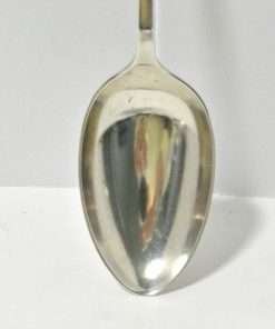 It is 7″ long and the bowl is 1 1/2″ in diameter. The spoon is in excellent condition. Any copper-color in the pictures is due to reflection on the spoon.
