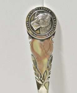 This wonderful piece of Antique British Dog Memorabilia, was made by Cooper Brothers & Sons in 1928. It is a large, solid sterling spoon that has a highly detailed head of a Fox Terrier dog at the top, with the words “The Wire Fox Terrier Association” surrounding it.