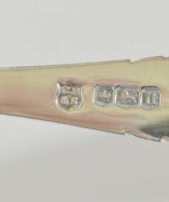 This wonderful piece of Antique British Dog Memorabilia, was made by Cooper Brothers & Sons in 1928. It is a large, solid sterling spoon that has a highly detailed head of a Fox Terrier dog at the top, with the words “The Wire Fox Terrier Association” surrounding it. It is fully hallmarked on the back with CB & S for the maker’s name, the Lion Passant mark for Silver, the Crown mark for Sheffield, and the date letter “l” for 1928.