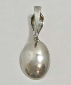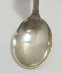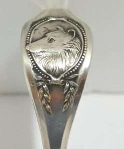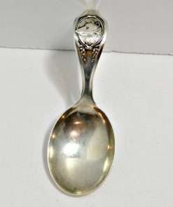 This sweet, antique baby feeding spoon is sterling silver and it features a very detailed Collie dog’s head on the curved handle.