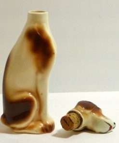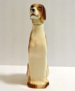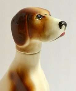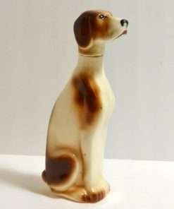This handsome, hand-painted Pointer is a vintage decanter. Marked “Ramses Germany” on the bottom, he is seated and gazing upwards, as though he is waiting to hear what comes next.
