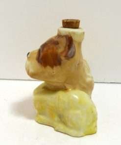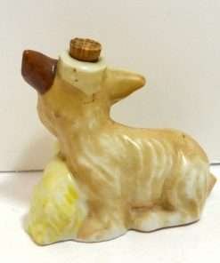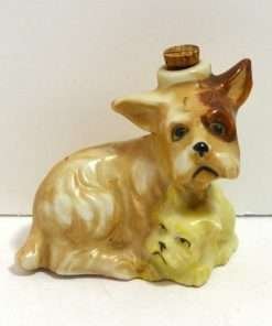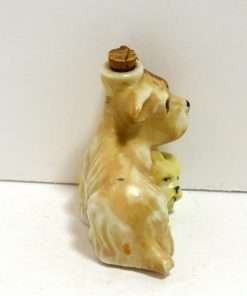 This wonderful dog figurine, made in “Occupied Japan” is the sweet combination of a Terrier dog “Mom” and her bashful puppy. From the look on her face, you can certainly tell that this is one protective dog! She is one of the many items made in Japan, specifically for export between 1945 – 1955. What makes this wonderful pair even more collectible is that this figurine is also a corked bottle. Used for perhaps either perfume or a cordial, it is in excellent condition showing minor spots where the label would have been. Sitting 3 1/4″ tall x 3 1/4″ long x 2″ wide, these two dogs will just melt your heart!. They will certainly be a great addition to an “Occupied Japan” collection. But if you would like to add a sweet sentimental touch to your vanity, or give someone you love a unique and special Mother’s Day gift…they would certainly make a wonderful choice.
