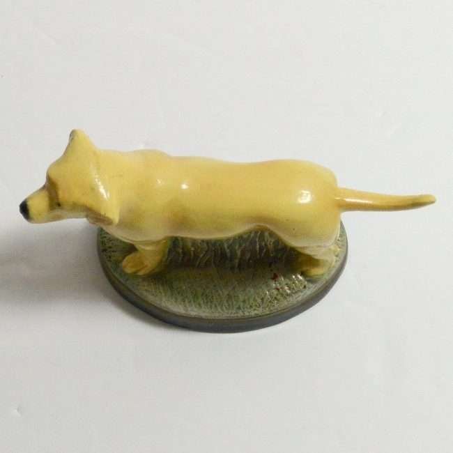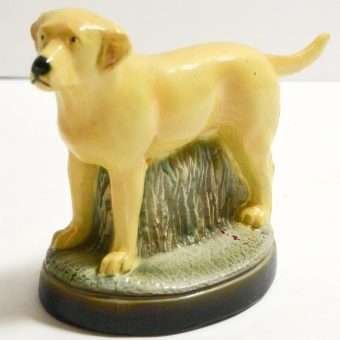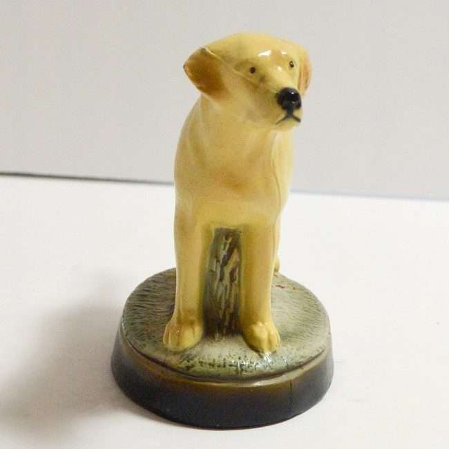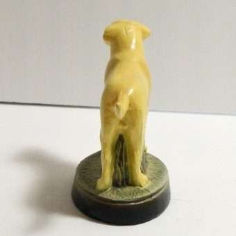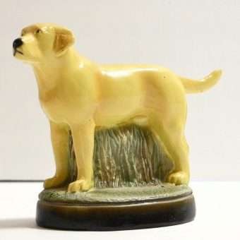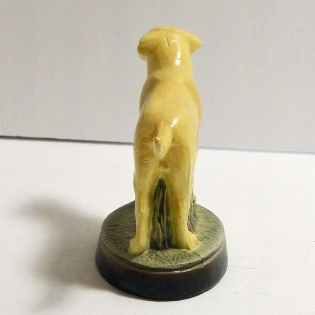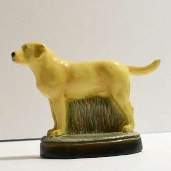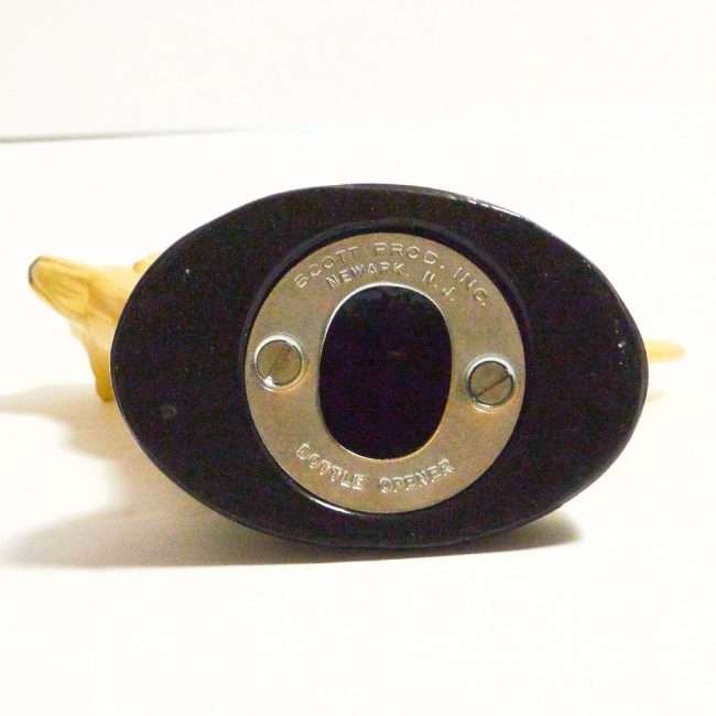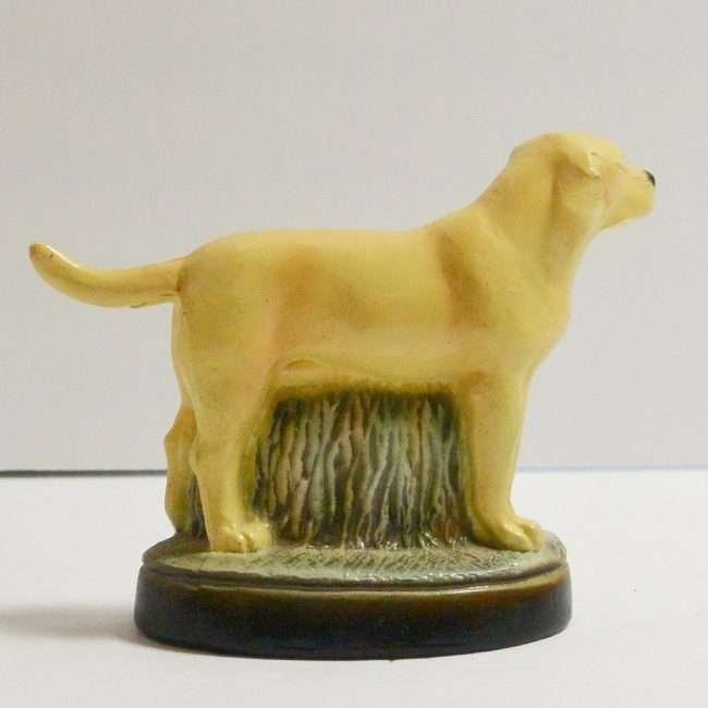 This highly-detailed, yellow labrador retriever dog bottle opener was manufactured in the USA by the Scott Products Company of Newark, NJ. It was hand-wrought and cast from zinc, then individually hand painted in enamel, and baked. This process gives it that amazing “porcelain-like” appearance.