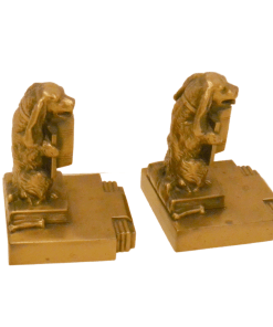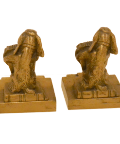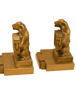 They were part of a series of comical bookends, depicting mostly dogs, playing various musical instruments. They were made by the Jennings Brothers Manufacturing Company of Bridgeport, CT during the 1920’s.