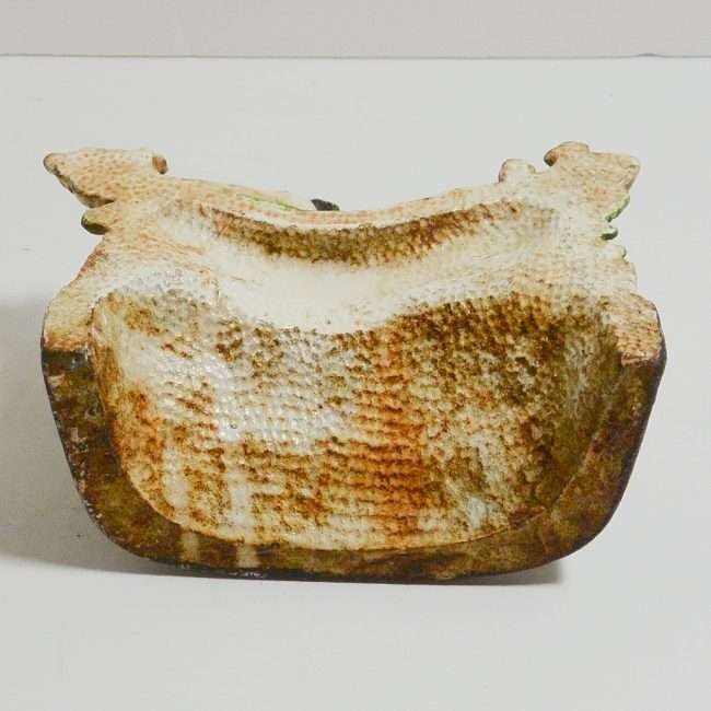 This vintage bookend, which is 5 1/4″ tall x 6″ long x 2 1/2″ wide, is quite heavy and sturdy enough to use as a doorstop as well.