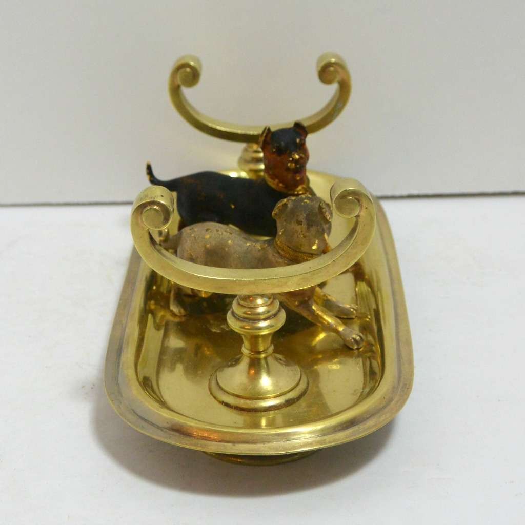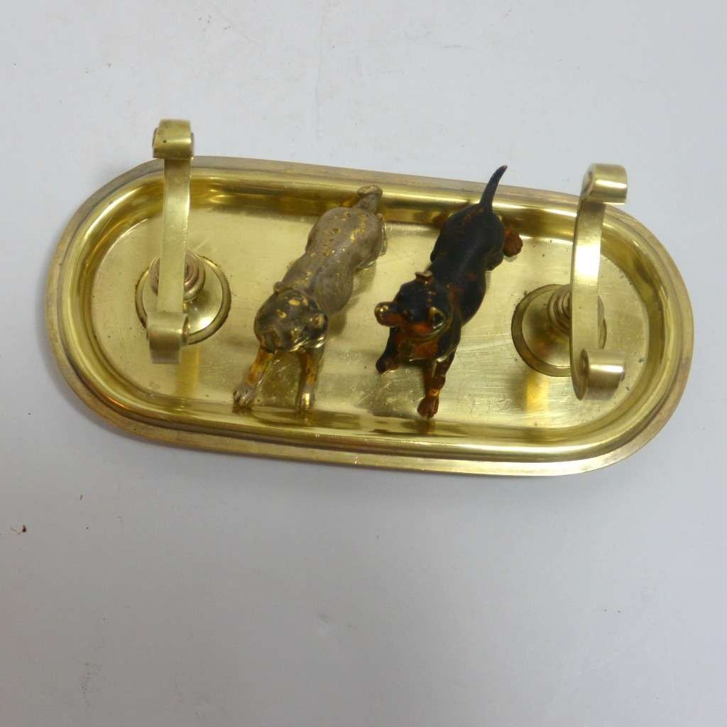 Antique Brass Quill Pen Stand with Cold Painted Bronze Pug and Terrier Dogs