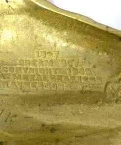 This wonderful, vintage cast brass doorstop, made to look like a Cocker Spaniel dog, and called “Dream Boy”, was handcrafted by one of the most highly regarded American brass companies of the 20th century. At 9″ tall x 7″wide, he is in excellent condition. He is clearly marked “Dream Boy” VA Metalcrafters, Waynesboro, VA, copyright 1949. He is a beautiful example of a mid-century modern figural doorstop. He would make a truly unique addition to any canine collection, and a special decorative piece for any Cocker Spaniel enthusiast.