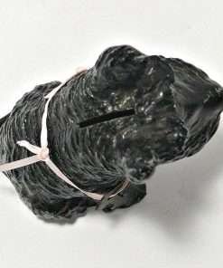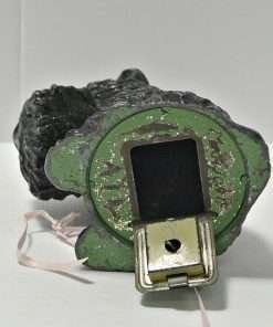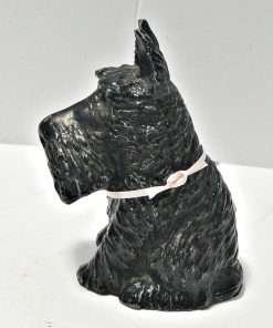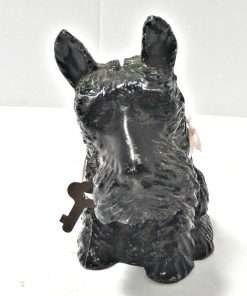 This wonderful Scottish Terrier bank still has his key. Made of cast metal and once painted black, he has lost a bit of paint, but not his personality. A more distinguished-looking fellow would be hard to find!
