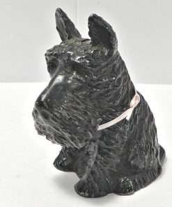This wonderful Scottish Terrier bank still has his key. Made of cast metal and once painted black, he has lost a bit of paint, but not his personality. A more distinguished-looking fellow would be hard to find!