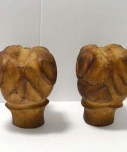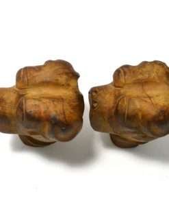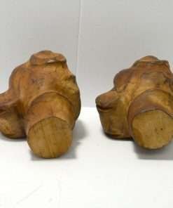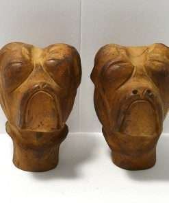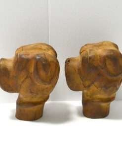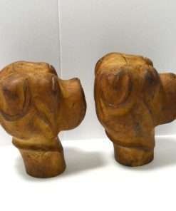This hand carved, solid wooden pair of Boxer heads are truly a unique and wonderful find. With their Folk Art charm and their substantial size and weight, they could be used as korbels, bookends, or purely decorative pieces. They each measure 4 1/2″ tall x 3 3/4″ long x 2 3/4″ wide.