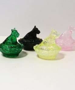 Measuring 2 3/4″ tall x 2 1/2″ long x 2″ wide, they are each in excellent condition, and marked with the Boyd Glass logo.
