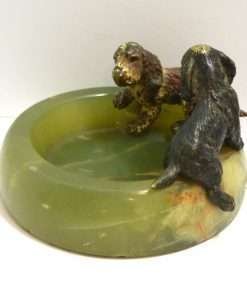 Austrian Bronze Cocker Spaniel Dog Pair on Onyx Bowl c.1900 – 1940
