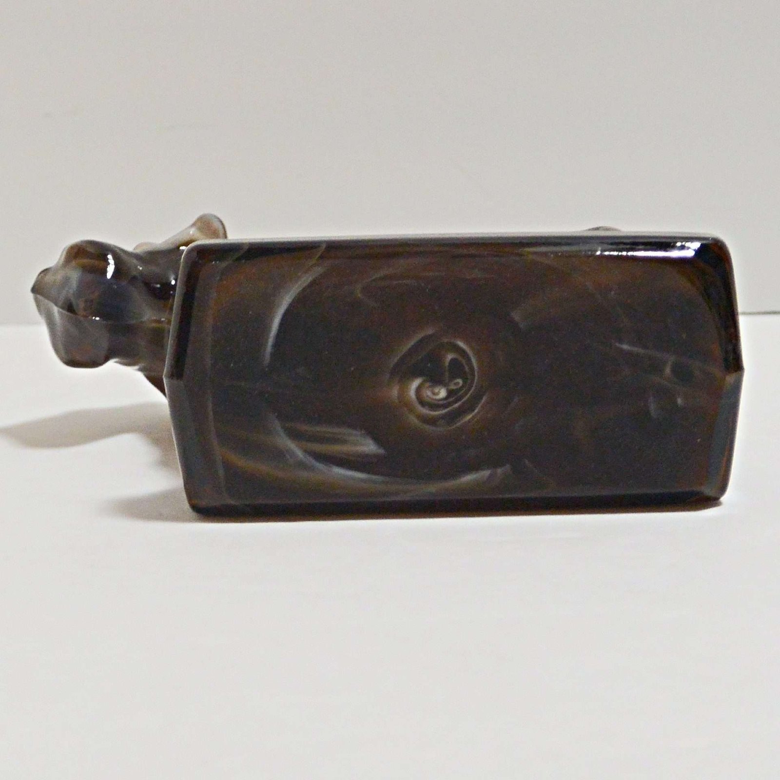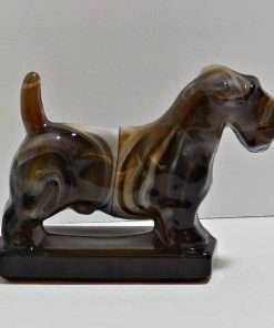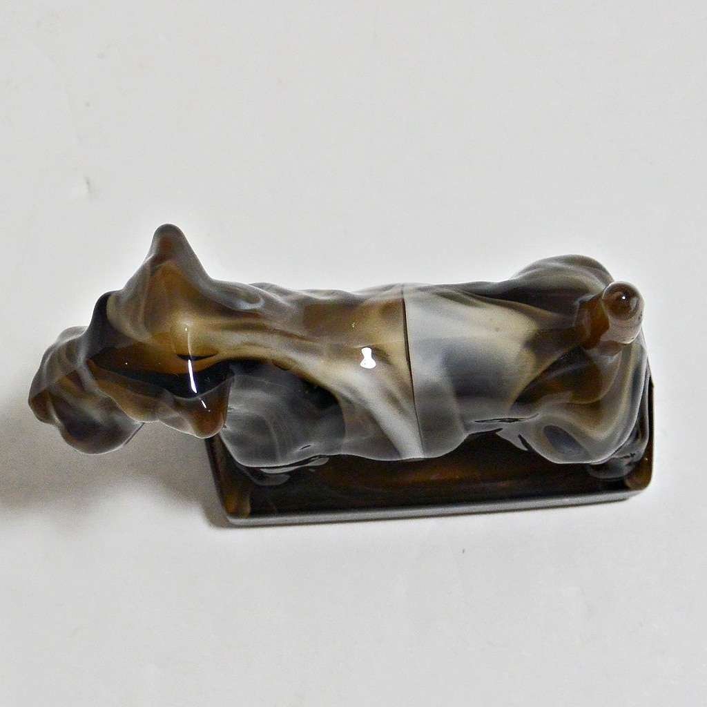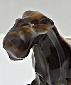 This wonderful Sealyham was originally designed and manufactured by Heisey Glass between 1941 – 1969. The dog was named “Champ” , mould # 1541. The Imperial Glass Company purchased the mould and produced only 150 of this fine Sealyham in slag glass, between 1969-1970.