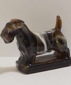“Stunning” is the appropriate word to describe this Sealyham Terrier dog designed in caramel slag glass! Deep chocolate, caramel, milk chocolate and white glass swirl in a gorgeous mixture to create this uniquely beautiful dog.