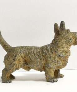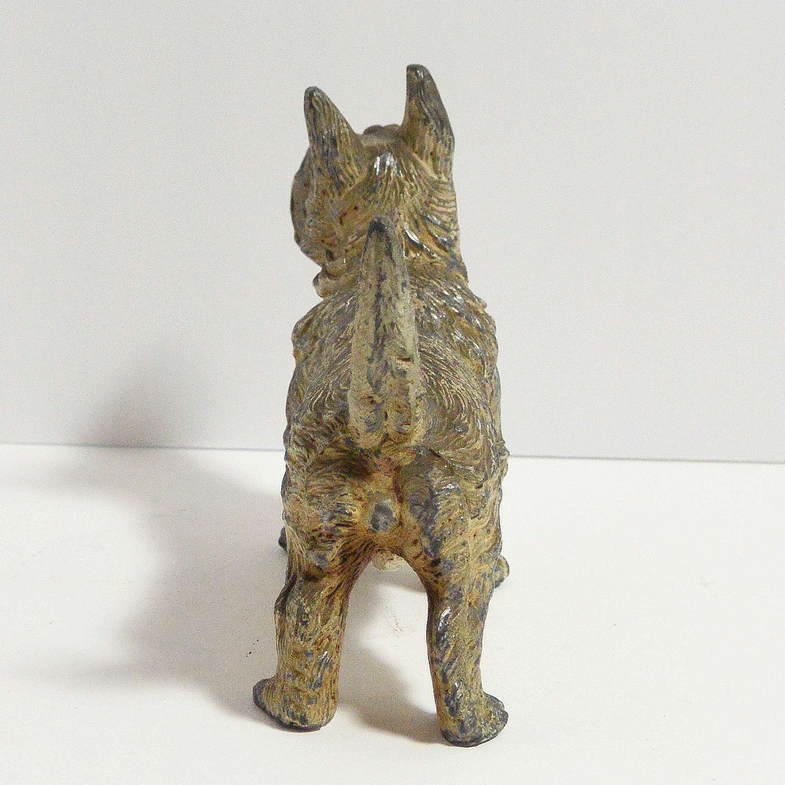 This cold-painted, metal, Scottish Terrier dog figurine may be quite old, but he wears his age well.