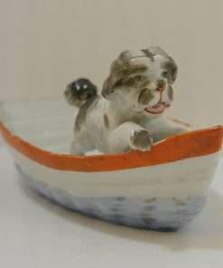 Conte & Boehme Porcelain Fairing Dog in Rowboat Trinket Dish c.1860-1914