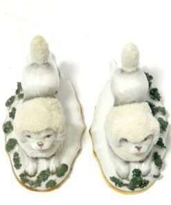 This pair of Staffordshire Poodle dogs is absolutely exquisite. Posing in a perfect bow, they measure 3″ tall x 4 1/4″ long x 2 1/2″ wide.