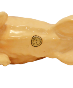 The designer of this figurine, Oscar Morten, immigrated from Sweden to the U.S. and opened a gift ware studio in Chicago in 1931. Over the next 32 years, he created over 300 popular dog and horse models. Composed of ceramic over a metal skeleton, these figurines, although beautiful and engaging, were prone to crazing and flaking, thus making it difficult, today, to find examples in perfect condition.