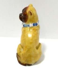 Harder to find and highly collectible, this Pug measures 4 1/4″ tall x 2 3/4″ long x 1 5/8″ wide. He is in excellent condition with an impressed mark at the base of is tail. He was made in Germany, during the late 19th century.