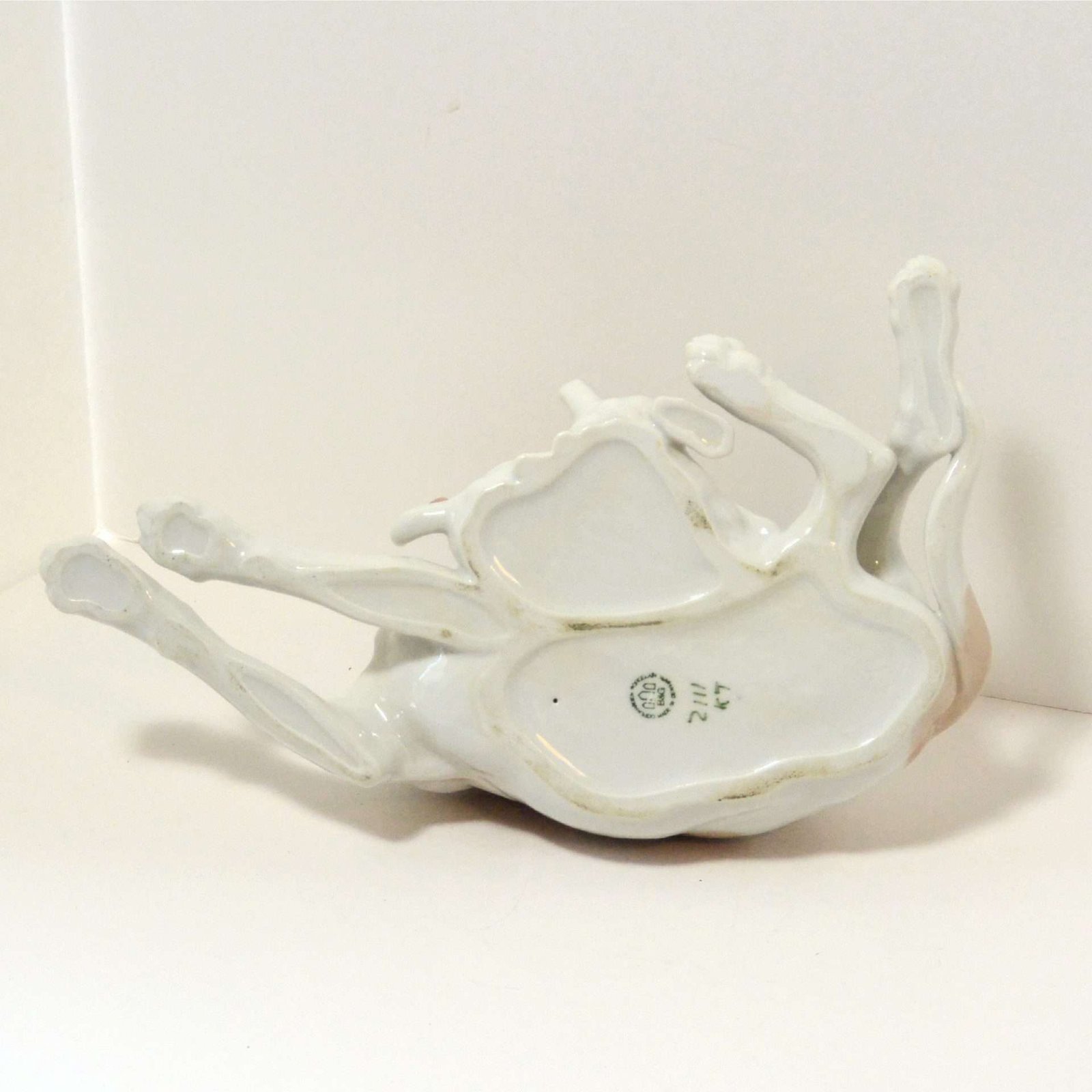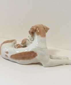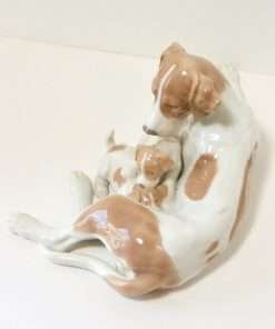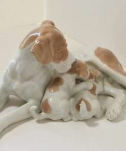 Measuring a full 6″ tall x 12 1/2″ long x 6 1/2″ wide, this wonderful vintage porcelain grouping of this mother Pointer with her pups is in excellent condition.