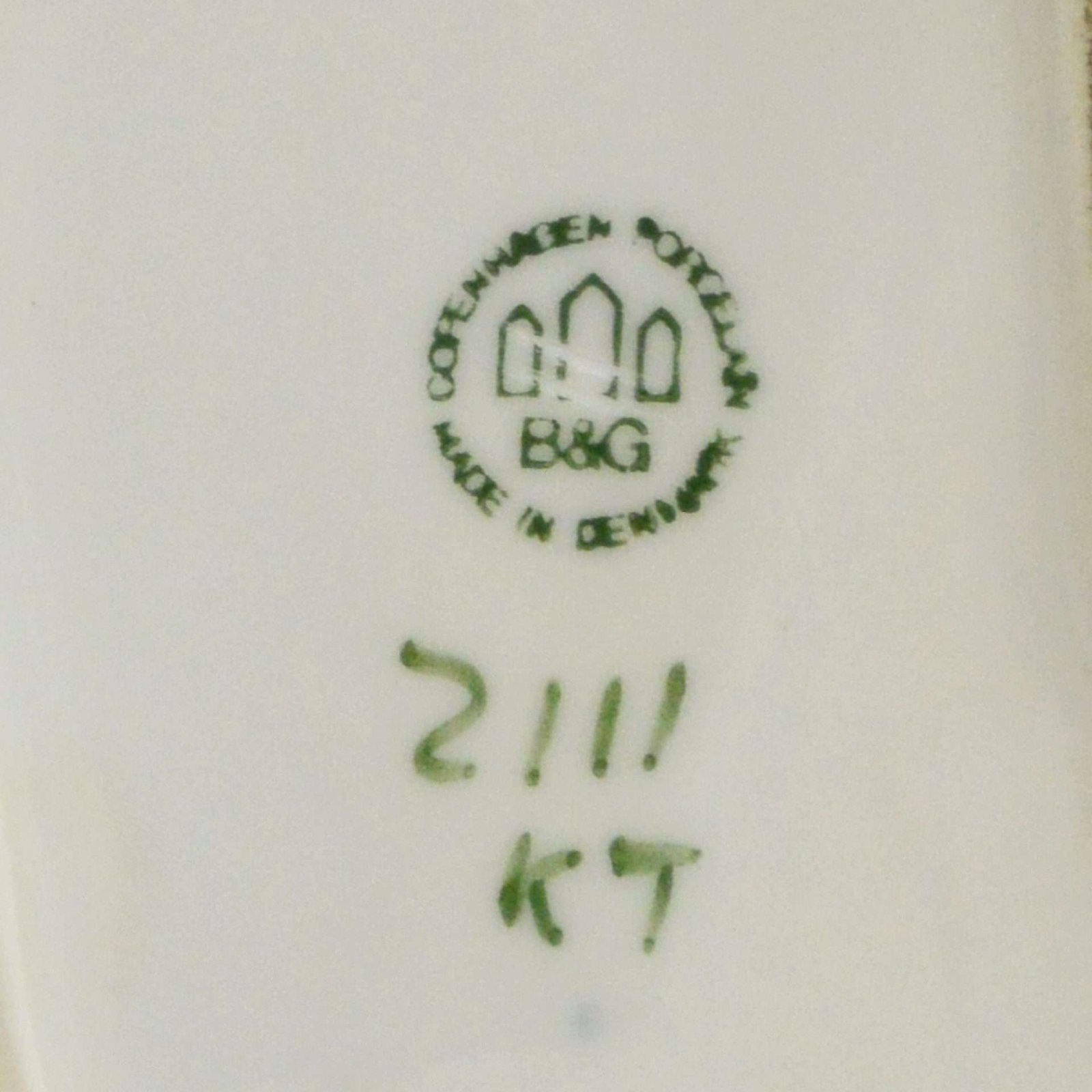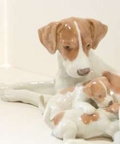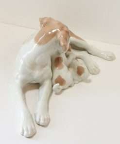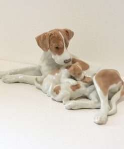 This exquisite Bing and Grondahl female Pointer dog is shown cuddling with her puppies.