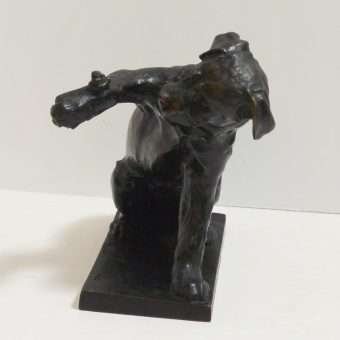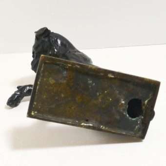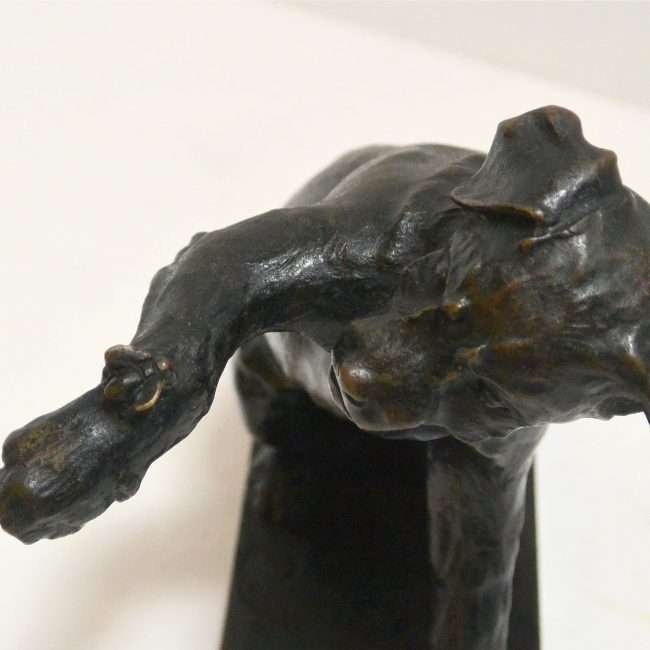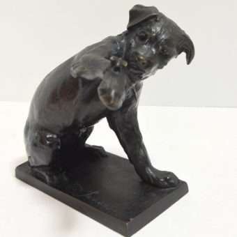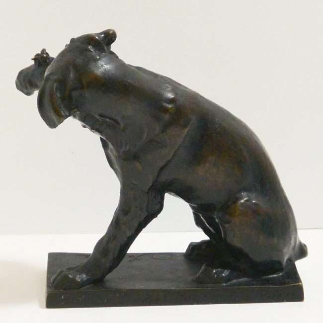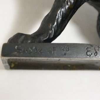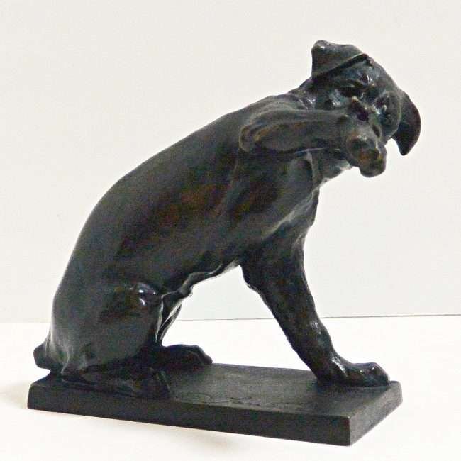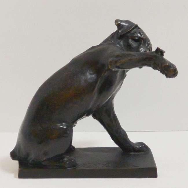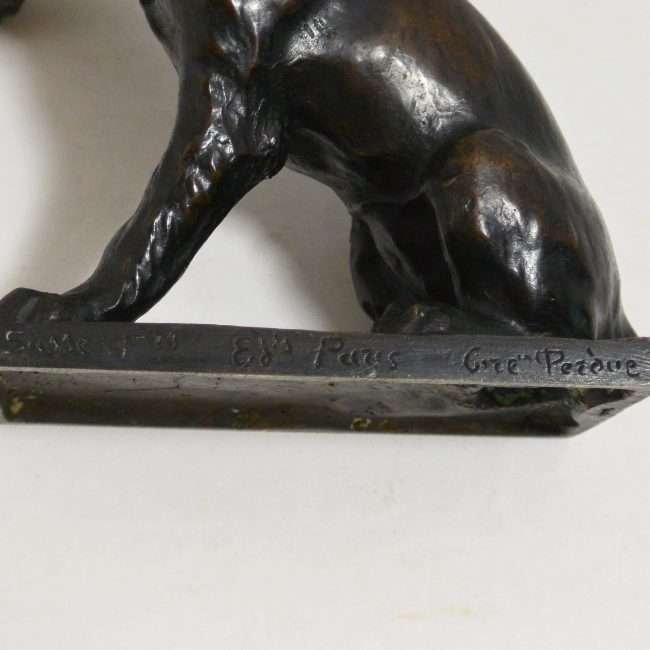 Measuring 5″ tall x 4.5″ long x 2.25″ deep, this bronze puppy dog is in excellent condition. It is molded with the artist’s signature, a circular cachet, as well as the foundry mention “Susse Fes Edits Paris.” This foundry is now the oldest art foundry still active in France, and it carries a stellar reputation.