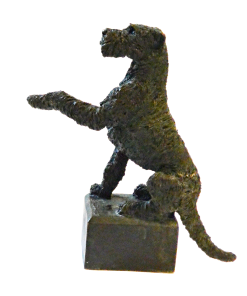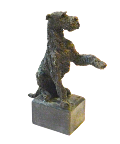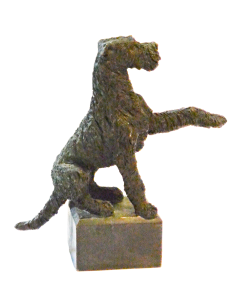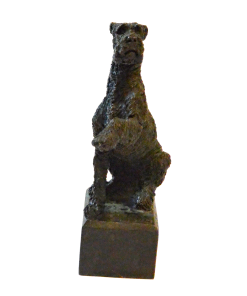 This elegant, bronze figurine features a Wire-Haired Fox Terrier in a dynamic “begging” pose.
