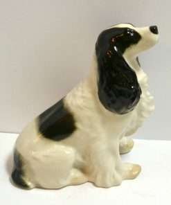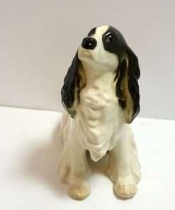 The designer of this gorgeous English Springer Spaniel figurine paid special attention in accenting the breed’s magnificent, flowing waves of fur. The artist also captured the dog’s alert, and affectionate temperament. This gorgeous dog sits 5 3/4″ tall x 4 1/2″ long x 3″ wide. It was made in the Leningrad Porcelain Factory – Lomonosov (St. Petersburg, Russia,) and is in mint condition. Place her on your desk or end table, and watch as her attentive gaze follows you wherever you go!Also, take a look at how wonderful three of our Lomonosov dogs look when displayed together. The unique design of these dogs from Russia really shows through, even though they represent dramatically different breeds.