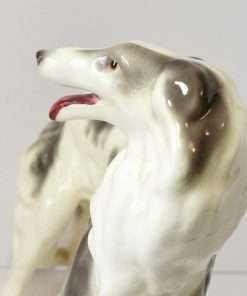 This magnificent porcelain Borzoi dog figurine was made in the Goldscheider factory in Trenton, New Jersey.