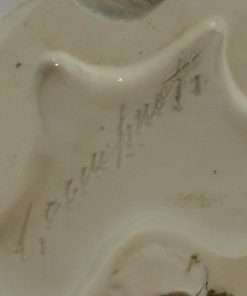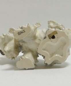 The detailing on this porcelain figurine is amazing, from the soulful look in his eyes, to the wild animation and “movement” of his fur. At 5 1/2″ tall x 6 ” long x 3 1/2″ wide, he is in excellent condition. He is hand signed “Cacciapouti”, and stamped “ITALY” on his underside.