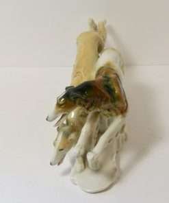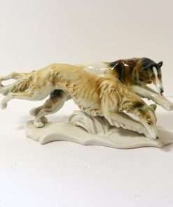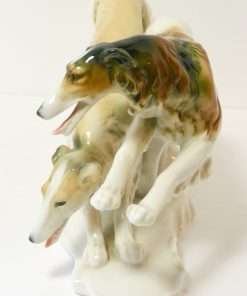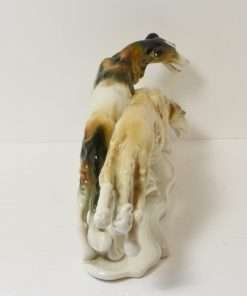 This exquisite pair of Borzoi dogs was designed by Karl Ens and manufactured by the Volkstedt Porcelain factory of Germany prior to WWII.