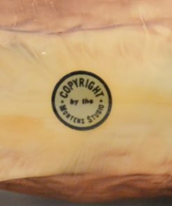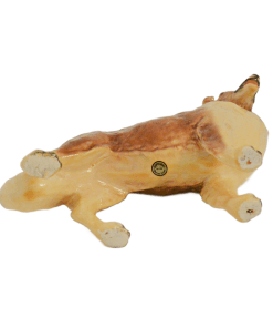 The designer of this figurine, Oscar Morten, immigrated from Sweden to the U.S. and opened a giftware studio in Chicago in 1931. Over the next 32 years, he created over 300 popular dog and horse models. Composed of ceramic over a metal skeleton, these figurines, although beautiful and engaging, were prone to crazing and flaking, thus making it difficult, today, to find examples in perfect condition.