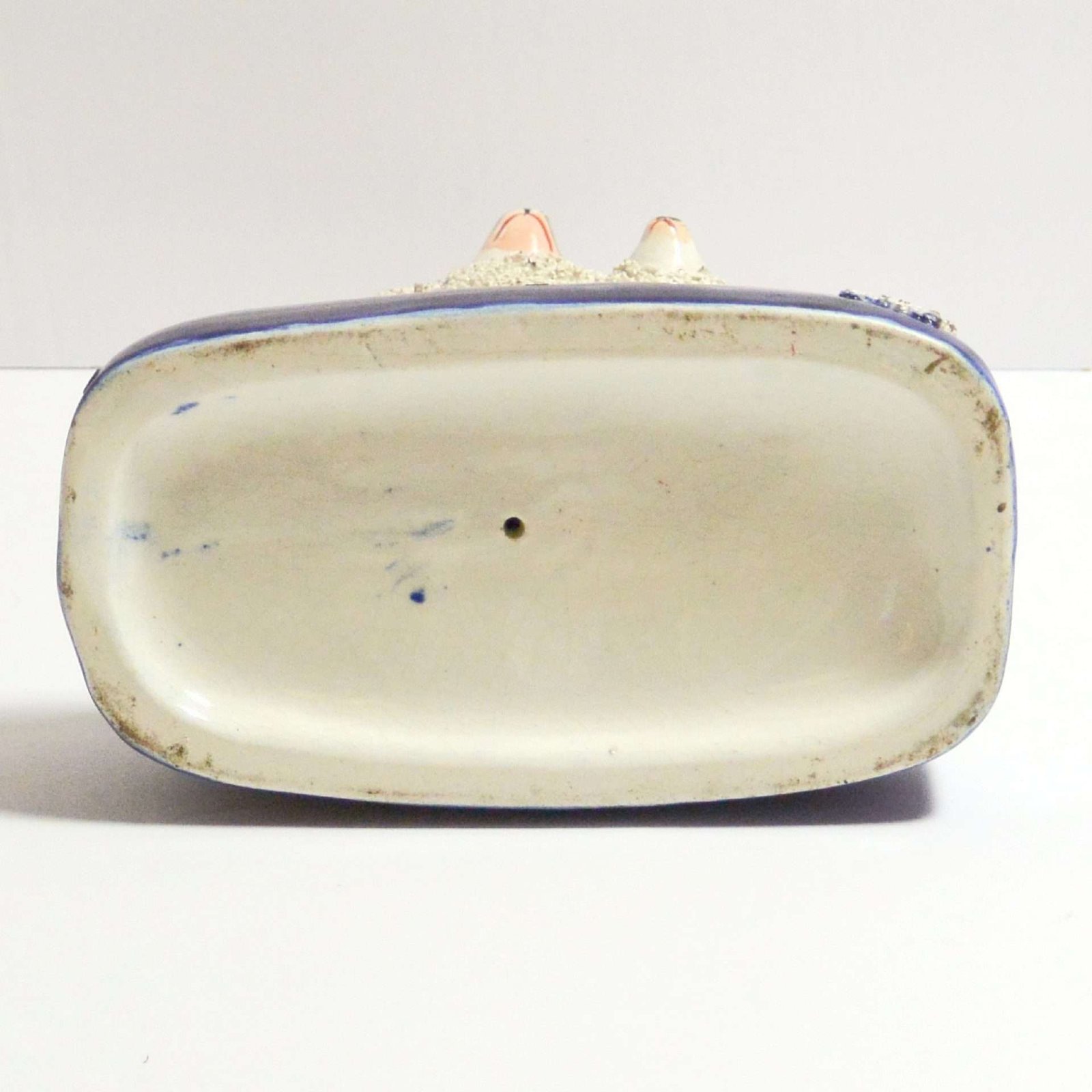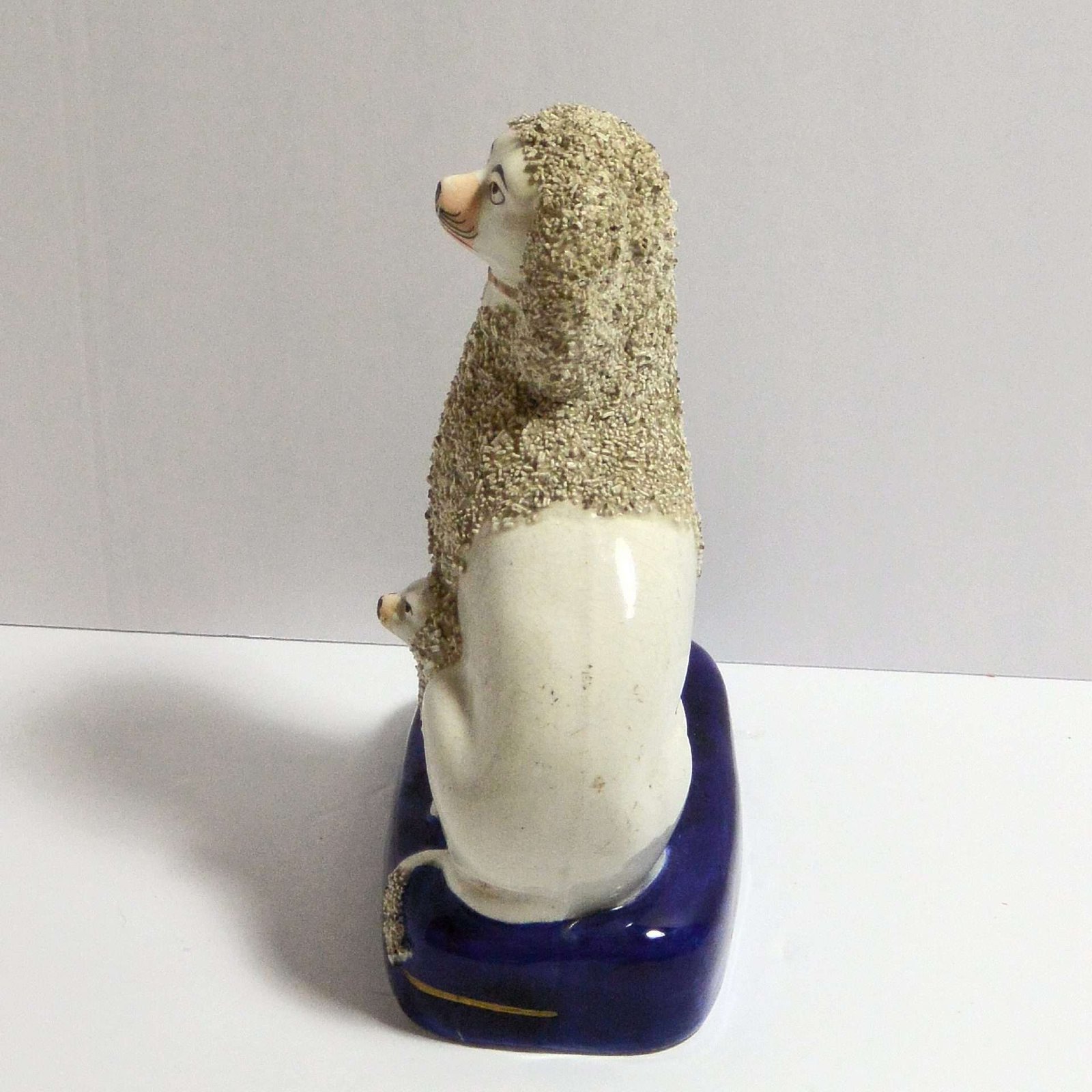 Made in England c. 1860 – 1880, he is decorated “in the round” (to front and back), and has shredded clay to simulate a Poodle’s