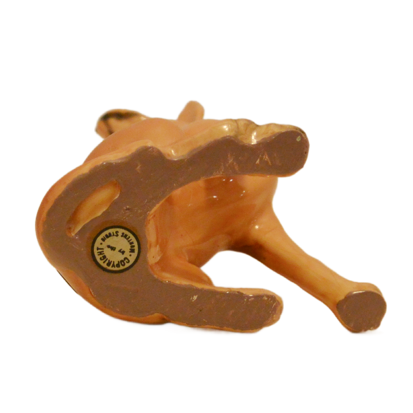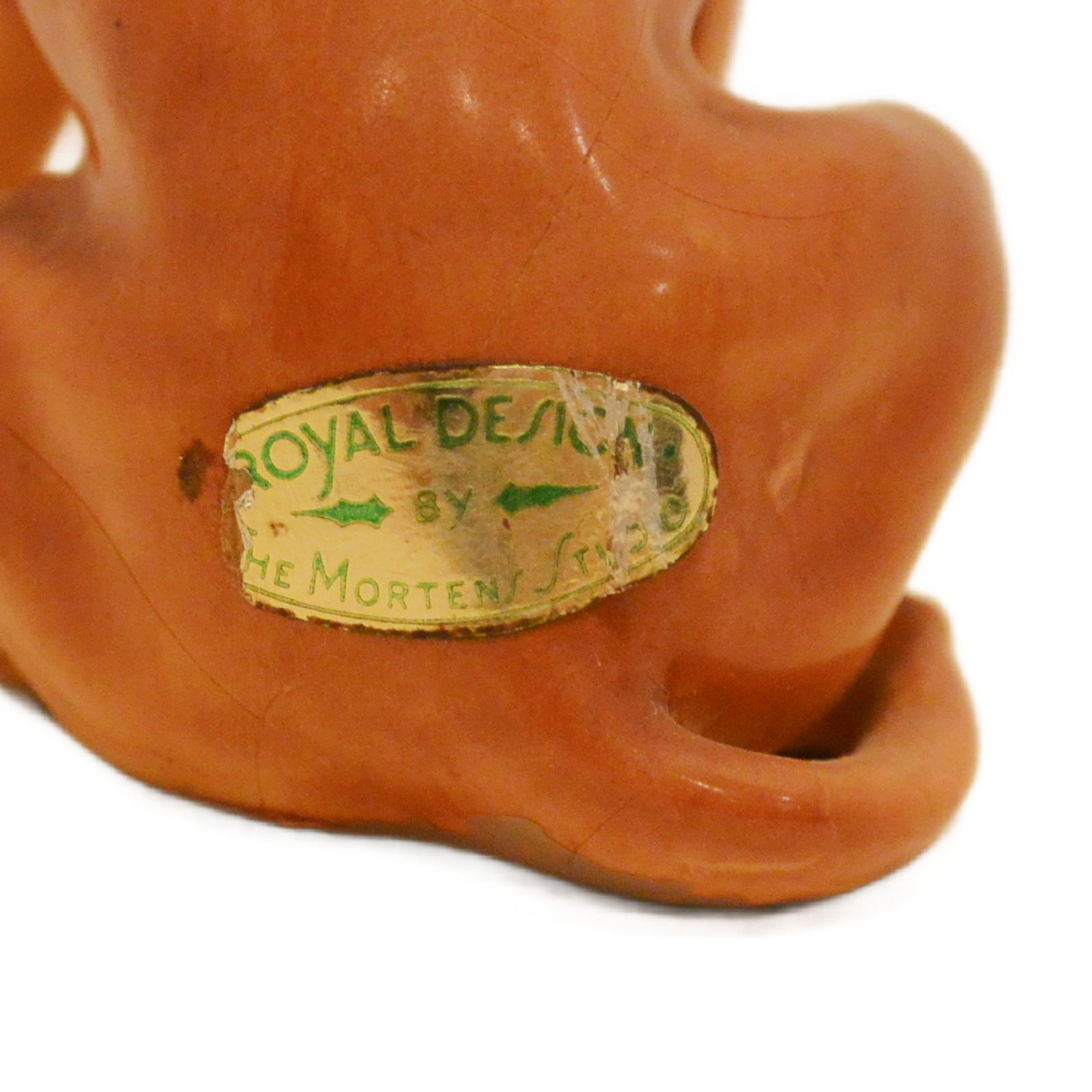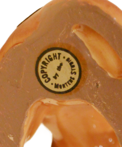 While many Mortens Studio pieces lost their paper labels decades ago, this survivor boasts both its original gold foil hip label and the circular copyright stamp on the base. It’s a remarkable find for the serious collector who values documented authenticity.