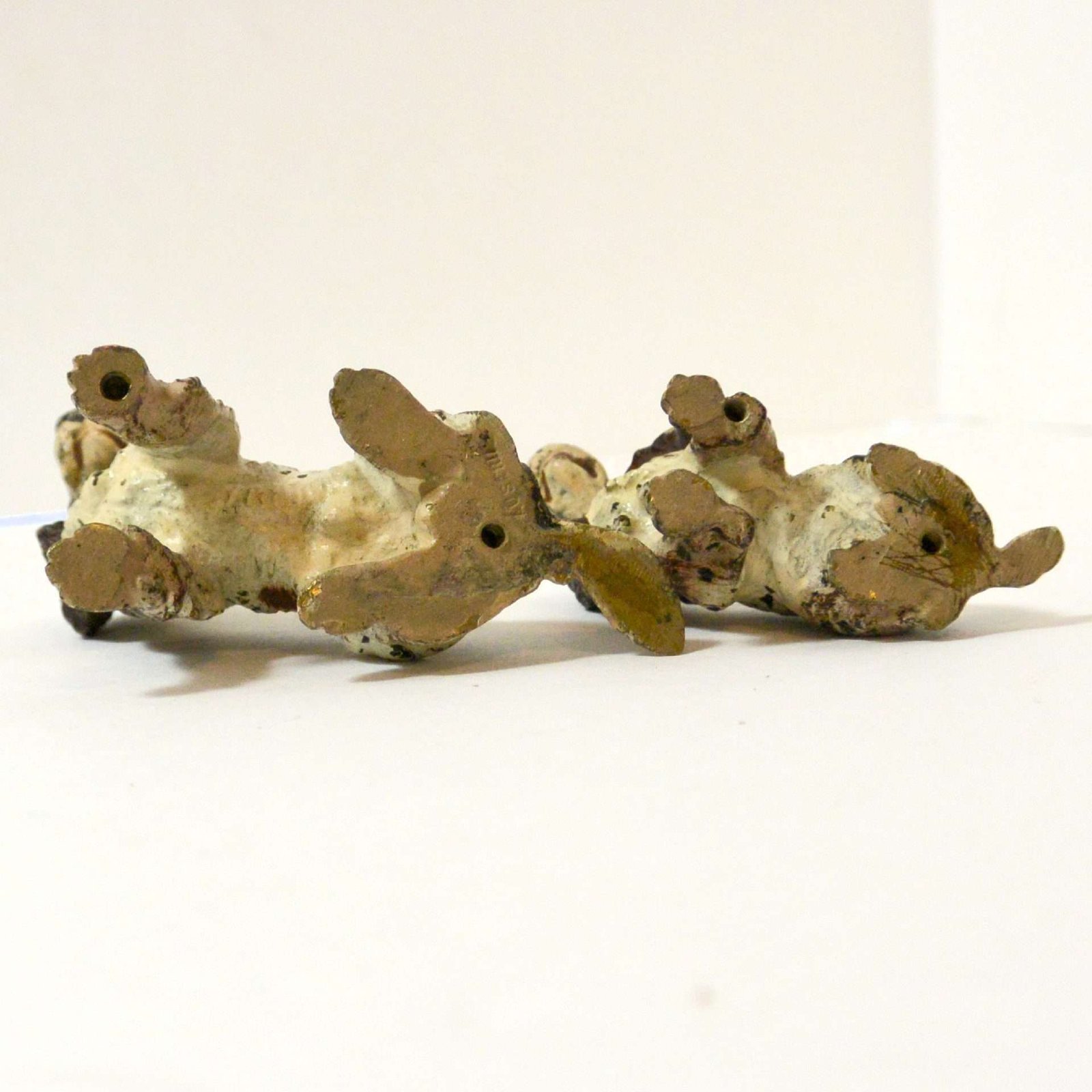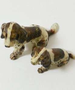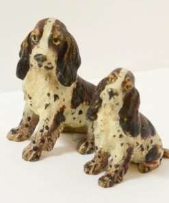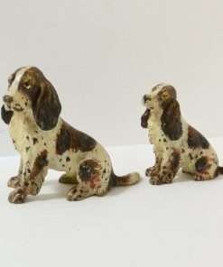 These miniature, cold-painted bronze, Springer Spaniel dogs look to be an adult/puppy pair.