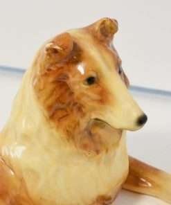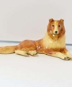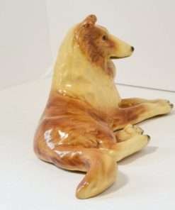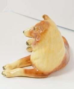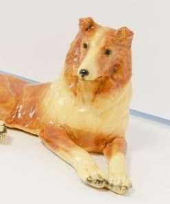 At 3 1/2″ tall x 8″ long x 4 1/2″ wide, he has fabulous detailing, showing rippling fur, as well as that characteristic Collie calm and gentle expression.