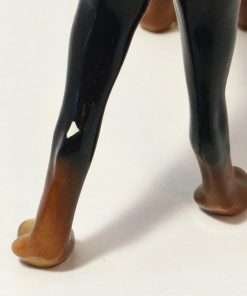 The designer of this figurine, Oscar Morten, immigrated from Sweden to the U.S. and opened a giftware studio in Chicago in 1931. Over the next two decades, he created over 300 popular dog and horse models. Composed of ceramic over a metal skeleton, these figurines, although beautiful and engaging, were prone to crazing and flaking, thus making it difficult, today, to find examples in perfect condition.