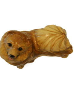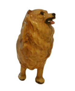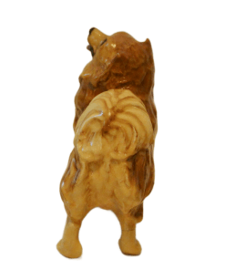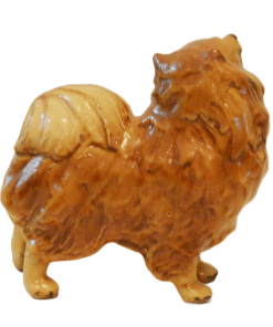 This wonderful, standing,Pomeranian was designed and produced by Mortens Studio. At 4″ tall x 4 1/4″ long x 1 1/2″ wide, she has fabulous detailing, showing her long silky fur, as well as her gorgeous plumed tail and delightful smiling face.