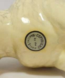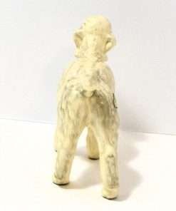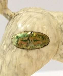 The designer of this figurine, Oscar Morten, immigrated from Sweden to the U.S. and opened a gift ware studio in Chicago in 1931. Over the next two decades, he created over 300 popular dog and horse models. Composed of ceramic over a metal skeleton, these figurines, although beautiful and engaging, were prone to crazing and flaking, thus making it difficult, today, to find examples in perfect condition.