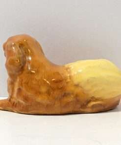 The designer of this figurine, Oscar Morten, immigrated from Sweden to the U.S. and opened a gift ware studio in Chicago in 1931. Over the next two decades, he created over 300 popular dog and horse models. Composed of ceramic over a metal skeleton, these figurines, although beautiful and engaging, were prone to crazing and flaking, thus making it difficult, today, to find examples in perfect condition.