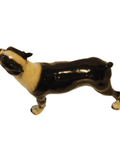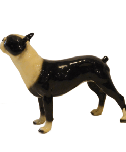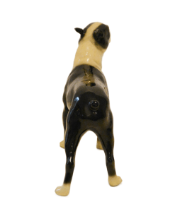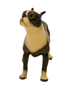 This wonderful, standing Boston Terrier figurine looks alert and ready to go after what he has fixed his gaze on.