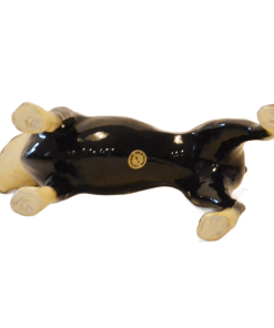 Measuring a full 5 1/2″ tall x 7″ long x 2 1/4″ wide, he has a very tiny chip on the tip of one ear, and a very tiny rough spot at the top of the other ear. Both are very hard to see unless you are looking for them. Otherwise, he is in excellent, ready-to-display condition.